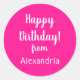 Sticker Rond Joyeux anniversaire du nom Hot rose Anniversaire