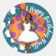 Sticker Rond Joyeux anniversaire ! Femme noire, Ballons & Fleur