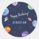 Sticker Rond Joyeux Anniversaire Galaxy Rocket Ship Aquarelle