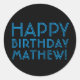 Sticker Rond Joyeux anniversaire (N'IMPORTE QUEL NOM) | Bleu et