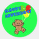 Sticker Rond Joyeux Anniversaire ours en peluche avec ballons