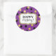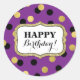 Sticker Rond Joyeux Anniversaire Purple Black Gold Confetti