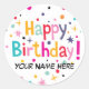 Sticker Rond Joyeux Anniversaire Rétro Personnalisable