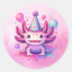 Sticker Rond Joyeux anniversaire rose et violet Axolotl