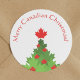 Ce Sticker rond classique présente un arbre de Noël et des décorations assemblées à partir de symboles canadiens - Feuilles d'érable. Le design Sticker est fait dans les couleurs traditionnelles de Noël : vert et rouge. Joyeux voeux de Noël et de saison du Canada!