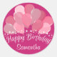 Sticker Rond Joyeux Ballons Rose Anniversaire Et Étoiles Blanch