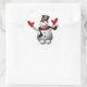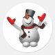 Un joli bonhomme de neige joyeux aux bras tendus en mitaines rouges et foulard.