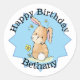 Sticker Rond Joyeux Bunny d'anniversaire personnalisé