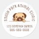 Illustration simple d'un chien de carlin gai, sortez la langue, jetant un oeil derrière une cloison. Seules sa tête et ses pattes avant sont visibles. Une patte est levée dans un geste de vague. Customisez avec votre propre nom ou message.
