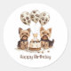 Sticker Rond Joyeux Chiens Yorkie d'anniversaire