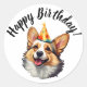 Sticker Rond Joyeux cône d'anniversaire Corgi