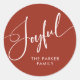 Sticker Rond Joyeux | Élégant Script Red Christmas