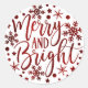 Sticker Rond Joyeux et brillants Feux de neige rouges Noël