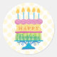 Sticker Rond Joyeux gâteau d'anniversaire avec points jaunes St