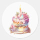 Sticker Rond Joyeux gâteau d'aquarelle d'anniversaire avec fleu