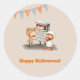 Sticker Rond Joyeux Halloween avec ours, canard et enfant calcu