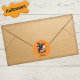 Cet autocollant fantaisiste est la meilleure façon de célébrer Halloween ! L'autocollant rond a un arrière - plan orange citrouille et un graphique d'un chat noir portant un casquette de sorcières sont sûrs de mettre un sourire sur votre visage. Les chauves-souris volantes et un citrouille sculpté ajoutent une touche de curiosité, mais le ton général de l'autocollant est ludique et amusant. Sous le graphique, le texte "Happy Halloween" est mis en noir avec une police d'halloween amusante. Un autocollant amusant à utiliser pour vos invitations de fête d'Halloween. #catlovers#halloweencat