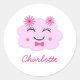 Sticker Rond Joyeux joli nuage rose kawaii nom personnalisé