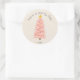 Sticker Rond Joyeux Jour Personnalisé Nom Pink Christmas Tree