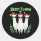 Sticker Rond Joyeux Llamas Drôle Noël Llama Vacances Animales