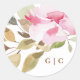 Happy Watercolor Florals Mariage Round Classic Sticker Étiquette. #aquarelle peinte #botanique moderne #invitations à un mariage floral #mariage de printemps #élégant #mariage d'été #mariage charmant #couleurs heureuses