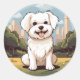 Sticker Rond Joyeux mignon adorable Chien maltais joyeux Chien