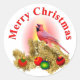 Dites Joyeux Noël avec ce beau cardinal assis sur des branches d'arbres dorés et quelques ornements colorés devant une flamme.