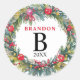 Sticker Rond Joyeux Noël Aquarelle Nom de la couronne Monogramm