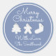 Sticker Rond Joyeux Noël Arbre Nom Bleu Blanc encadré