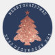 Sticker Rond Joyeux Noël Arbre Rose Gold Blue Navy