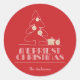 Les mots Noël le plus joli en lettrage vintage rétro, un croquis blanc avec de faux ornements en feuille d'or et des cadeaux sont présentés sur ces autocollants ronds rouges personnalisés avec votre nom de famille. Élégant pour toute occasion de Noël ou offrir comme cadeau d'hôtesse. CORRESPONDRE des articles dans notre magasin.