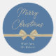 Ajoutez la touche finale à votre emballage cadeau cette saison de vacances avec ces élégants stickers ronds bleu et crème de Noël beige. Doté d'une police de style manuscrite qui dit "Joyeux Noël", un arc blanc dessiné à la main avec votre nom personnalisé en dessous.