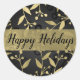 Sticker Rond Joyeux Noël Botanique Noir & Or Élégant