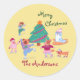 Sticker Rond Joyeux Noël Chien Ice Patinage Nom Pastel Jaune