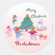 Sticker Rond Joyeux Noël Chien Ice Patinage Nom Pink Gift