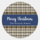 Sticker Rond Joyeux Noël classique Plaid Bleu Blanc