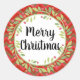 Sticker Rond Joyeux Noël couronne rouge rétro