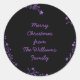 Typographie d'écriture décorative Joyeux Noël de la famille Williams, vous pouvez changer le texte et ajouter votre nom, Stars Black Purple Chic Holiday Season Enveloppement cadeau, Sticker rond