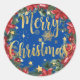 Sticker Rond Joyeux Noël Gold Stars Snowflakes Poinsettias