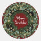 Sticker Rond Joyeux Noël Green Wreath Hiver Gold Bourgogne