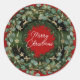 Sticker Rond Joyeux Noël Green Wreath Winter Red Woodland
