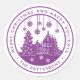 Joyeux Noël Joyeux Vacances Hiver Personnalisé Nom Stickers Étiquettes présente le texte "Joyeux Noël et Joyeux Vacances" dans un script moderne violet et personnalisé avec votre nom autour d'une maison avec des arbres de Noël et des flocons de neige. Parfait pour les fêtes de Noël et les cadeaux de Noël ou au bureau pour les produits ou le courrier. Conçu par ©Evco Studio www.zazzle.com/store/evcostudio