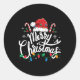 Sticker Rond Joyeux Noël Lumières Rouge Noël Chapeau Noël Famil