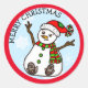 Festif bonhomme de neige avec foulard rouge et vert et casquette avec flocons de neige Joyeux Stickers de Noël.