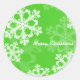 Sticker Rond Joyeux Noël moderne Green Snowflakes Motif