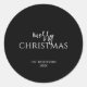 Sticker rond minimaliste Black Joyeux Noël Classic. Personnalisez le texte personnalisé ci-dessus. Les couleurs arrière - plans utilisées dans cette collection peuvent également être customisées. Vous pouvez trouver d'autres éléments de coordination dans notre "Collection Minimaliste de Sentiments de Vacances"