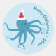 Sticker Rond Joyeux Noël octopus Père Noël bleu