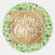 Joyeux Noël en lettrage blanc chic sur un brin d'or sur un arrière - plan de gribouillis d'or moderne et des points sur un motif vert abstrait, ces autocollants viennent en 2 tailles et plusieurs formes. CORRESPONDANCE d'objets dans notre collection.