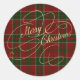 Sticker Rond Joyeux Noël or script rouge vert plaid tartan