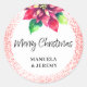 Sticker Rond Joyeux Noël Parties scintillant rouge Poinsettia